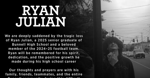 “Stratford Public Schools is heartbroken by the loss of Ryan Julian, a 2025 Bunnell High School graduate and member of our football community,” Acting School Superintendent Heather M. Borges said. “Our thoughts are with Ryan’s family, friends, teammates, and the entire community during this difficult time.” Counseling services have been made available to students and staff affected by the tragedy.