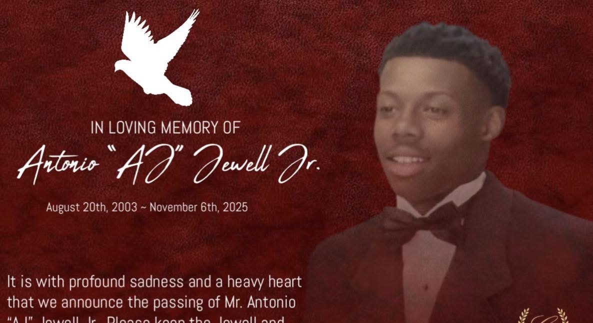 Antonio “AJ” Jewell will forever be remembered for his courage, his spirit, and his unwavering love for his school, teammates, and community. Once a Gladiator, always a Gladiator. His light, love, and legacy will remain in the hearts of all who knew him.